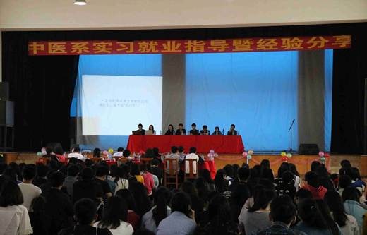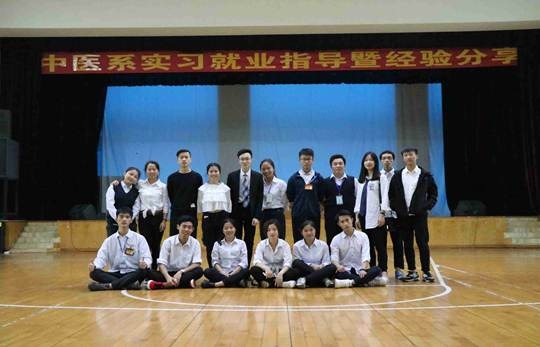 时光如梭,转眼2015级全体学生即将奔赴全省各实习医院实习,为更好的指导中医系2015级学生选择实习医院和顺利开展实习工作,指导医学生树立正确的择业观和就业观,中医系于2017年3月30日下午,在校本部学生活动中心召开2015级实习生就业指导暨经验分享会。学校分管副校长陈志超、临床系党支部书记曾艺文、中医系副主任张贵锋、系党支部副书记庄百鹏、实习就业办李智锋副科长、系部辅导员及2015级全体学生参加本次会议,会议由中医系团总支副书记林润桐主持。首先,由14级八名优秀实习生和实习大组长分别发言,他们从医院的临床带教、技能培训、优秀实习生事迹、感恩活动以及实习日常管理等几个方面展开讲述,发言既切中实际,又给人启迪,让大家能够从短短几分钟的发言中对各实习医院有一个清晰的认识。会场气氛生动、活跃,时时引发同学们阵阵掌声。其次,由实习就业办副科长李智锋老师和中医系副主任张贵锋对大家在实习期所遇到的问题做一一解答,同时对即将实习的15级同学提出实习具体要求。最后,由14级优秀实习生和15级同学面对面交流实习经验。同学们都积极踊跃的参与,收获了宝贵的实习经验。优秀实习生反馈的实习信息将为我系以后更好地开展实习工作提供支撑和参考,学校领导和系部老师祝愿各位同学在即将的实习中学有所成、学有所获、心想事成、前程似锦。