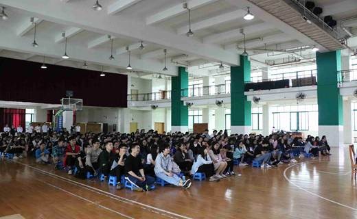 同学们认真听实习生代表分享实习经验